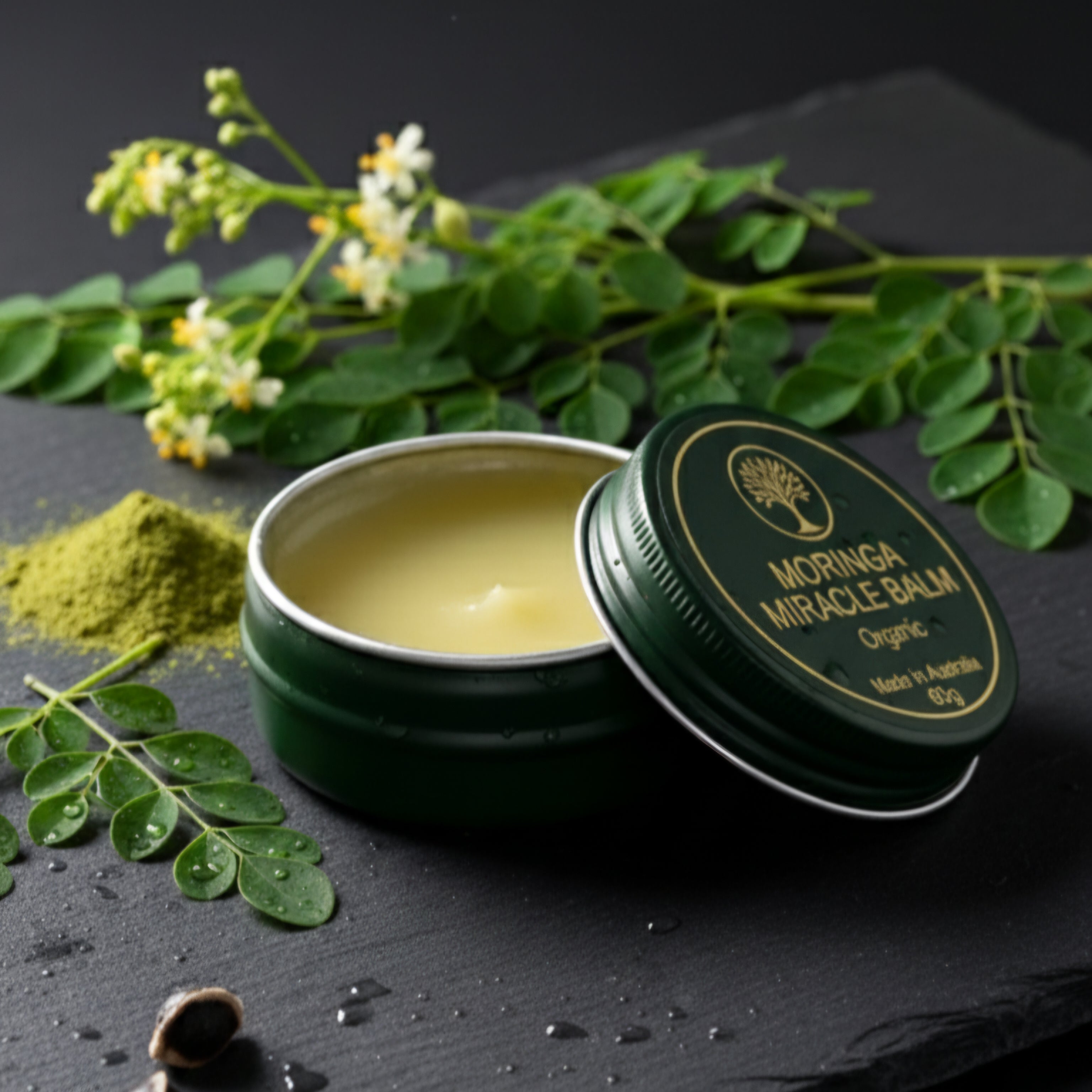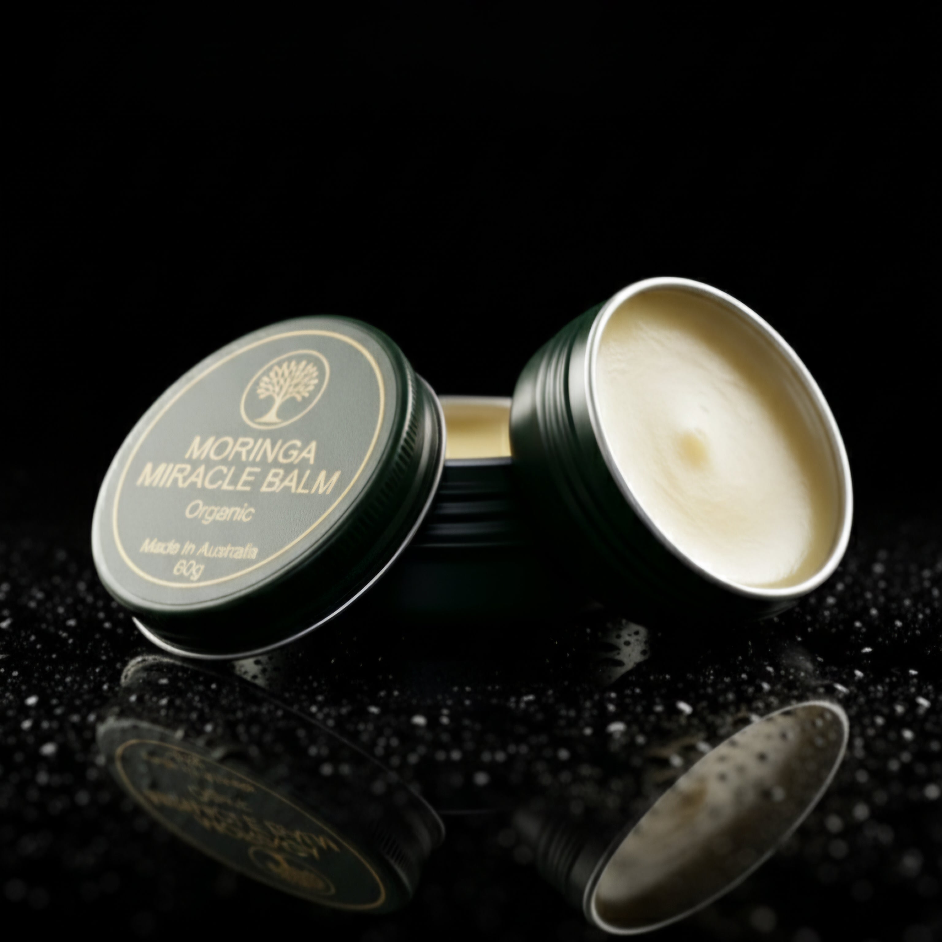 Warm a small amount of Moringa Miracle Balm between your fingertips until it softens into a silky texture. Gently massage into clean, dry skin using slow, circular motions. Apply to the face, lips, cuticles, or anywhere your skin needs deep hydration and soothing care.
